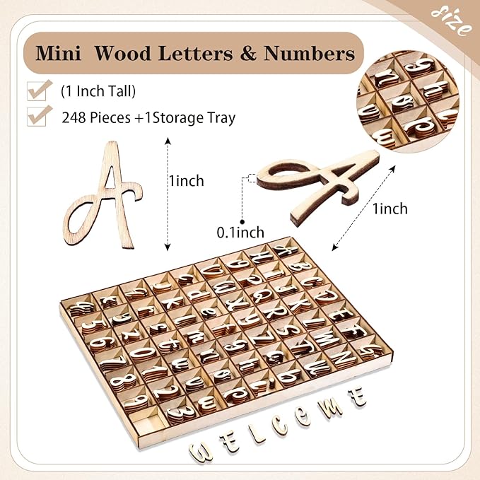 - Easy to Sort and Organize: the 1-inch letter and number set comes with a wooden storage box, which can be used to store wooden letters and numbers in it, making it difficult to lose and scatter, clean and tidy, and convenient for you to store and take out