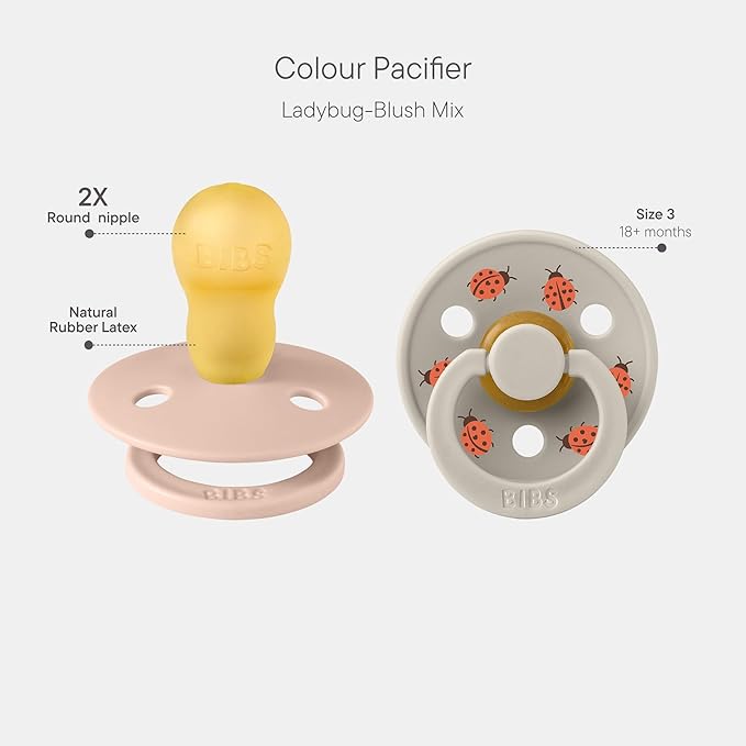 BIBS Studio Soother 2-Pack, BPA Free Dummy Pacifier, Round Nipple. Natural Rubber Latex, Made in Denmark, Size 3 (18+ Months), Blush/Sand