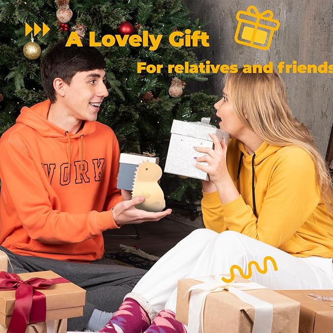 LED Squishy Animal Night Light - 2 Level Dimmable Nursery Lamp for Kids, Rechargeable Touch Lamp, Cute Dorm Decor - Perfect Baby Boys Girls Gift (Little Dinosaur)
