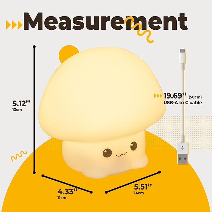 LED Squishy Animal Night Light - 2 Level Dimmable Nursery Lamp for Kids, Rechargeable Touch Lamp, Cute Dorm Decor - Perfect Baby Boys Girls Gift (Cartoon Mushroom)
