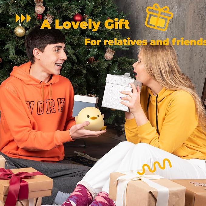 LED Squishy Animal Night Light - 2 Level Dimmable Nursery Lamp for Kids, Rechargeable Touch Lamp, Cute Dorm Decor - Perfect Baby Boys Girls Gift (Pea Duck)