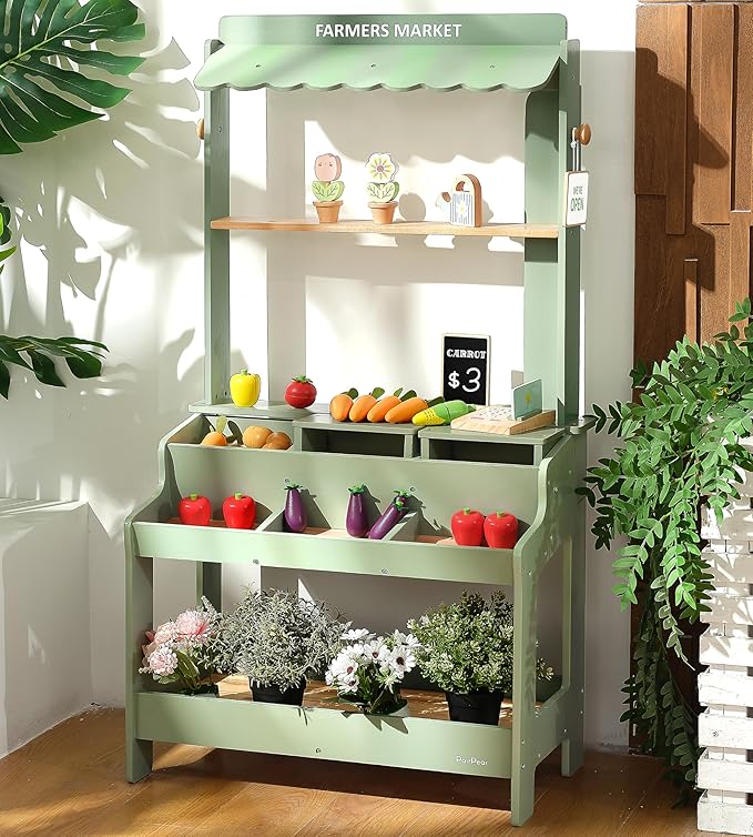- XL 2 in 1 Design: hybrid mud kitchen and grocery store market stand lets kids plant, dig, splash-cook and “sell” produce indoors or outdoors