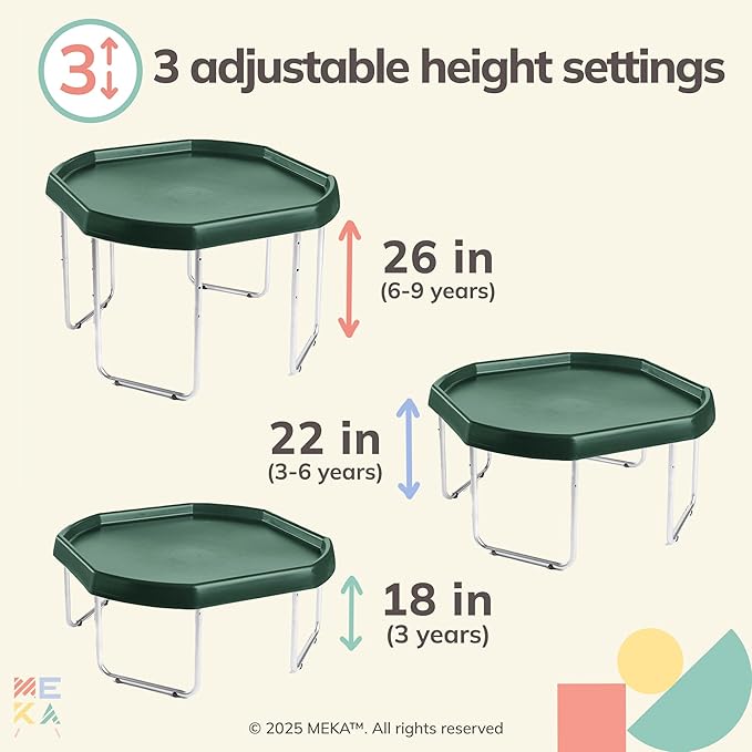 - LARGE SIZE & ADJUSTABLE STAND – Large tuff trays are great for group play, measuring 38" in diameter and fits up to 6 children. The stand can be set at 3 different heights: 18 inches, 22 inches, 26 inches; ideal for different ages and activities!