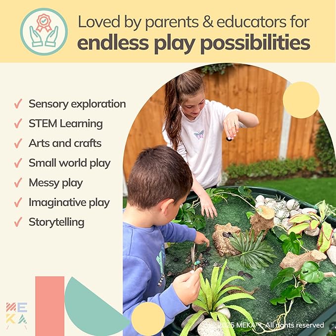 - Explore MEKA Tuff Tray Accessories — including our waterproof cover, grass mat, solar fountain & more — available in our Amazon Storefront. Visit the MEKA Store above to complete your sensory play setup.