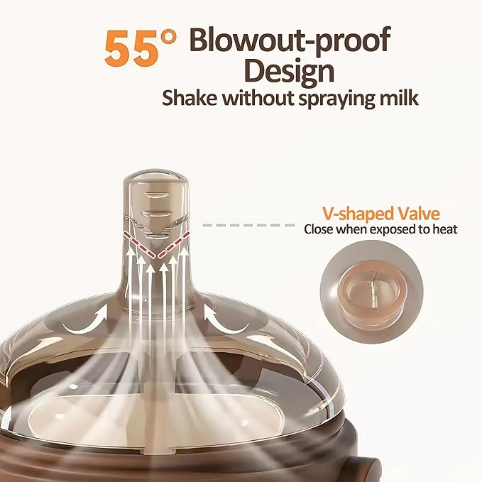 - 【Spill-Proof & Leak-Proof】Say goodbye to messy spills! The airtight lid prevents leaks, while the double air-hole design balances internal and external air pressure, significantly reducing colic, tension and discomfort