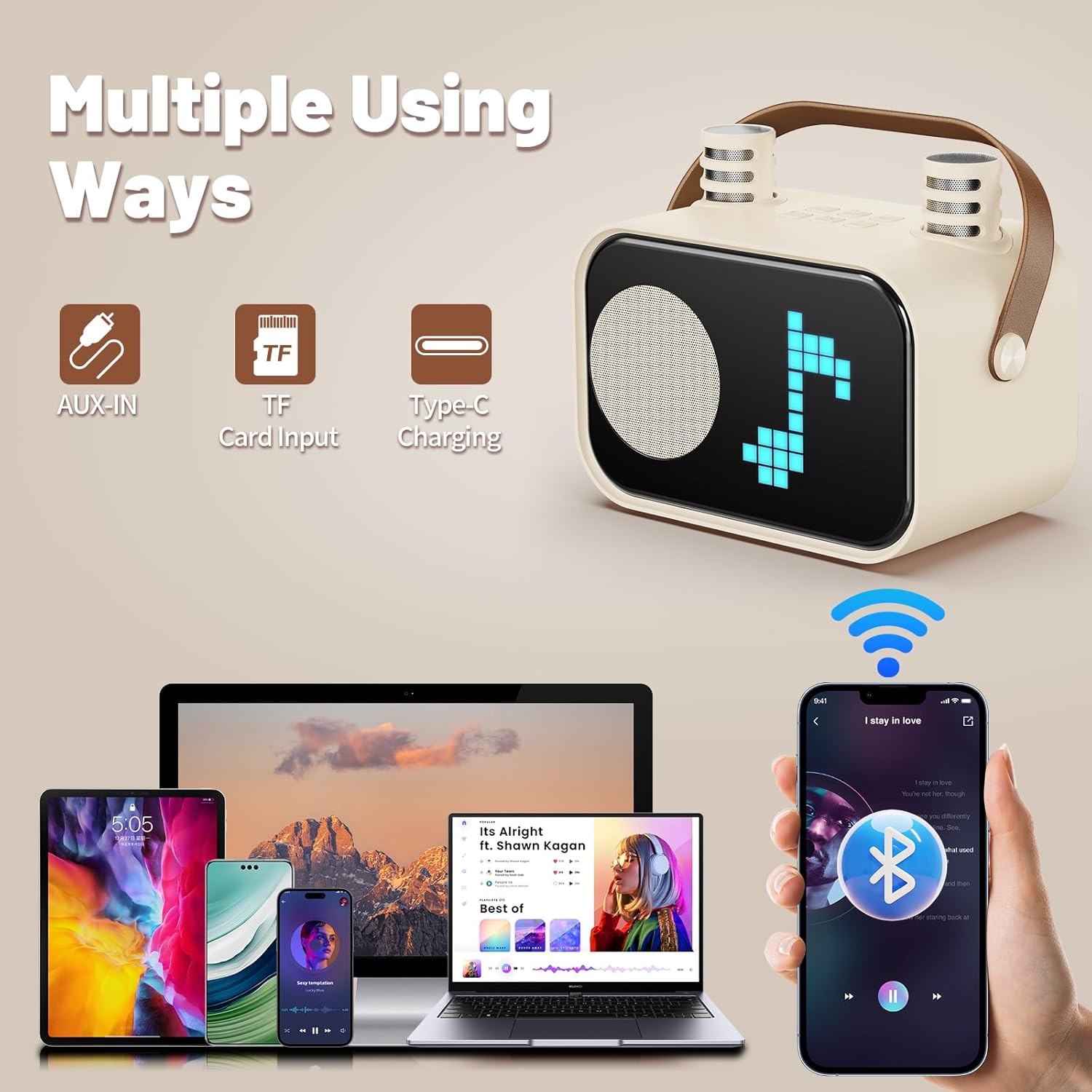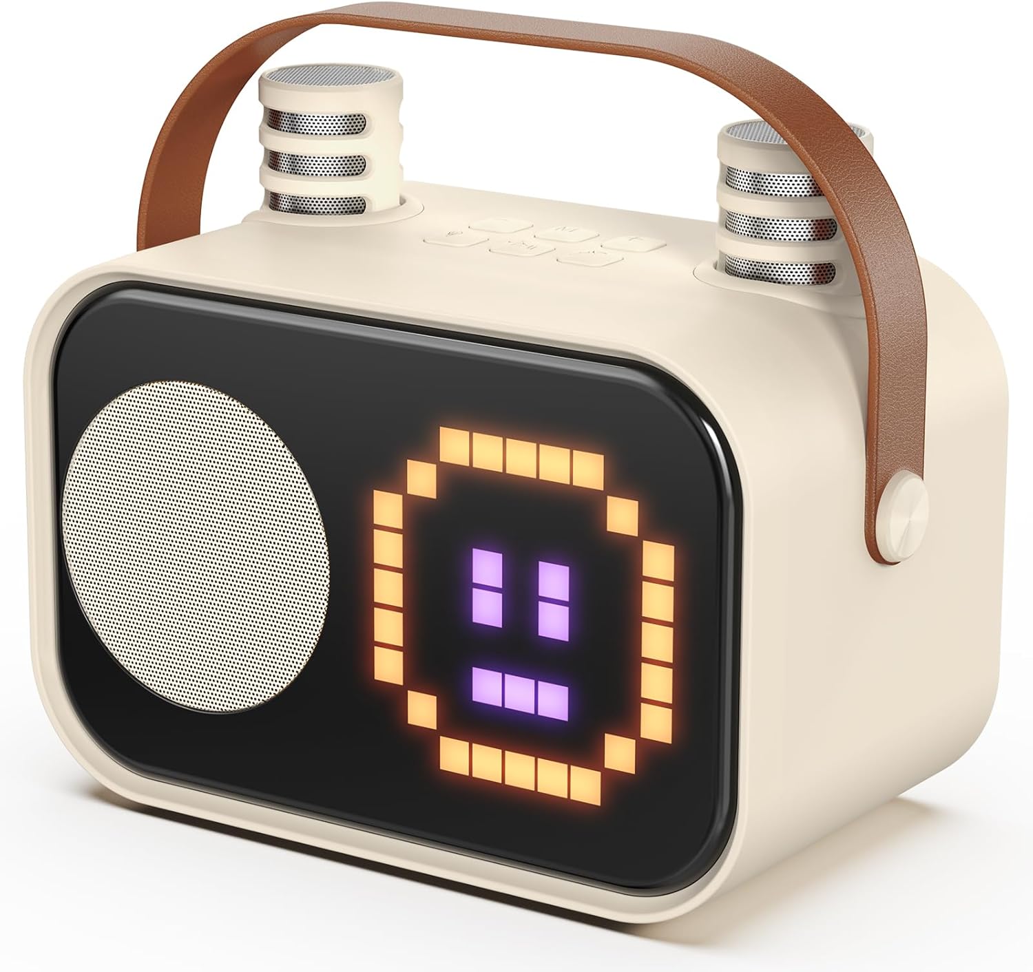 Karaoke Machine for Kids Adults, Portable Bluetooth Karaoke Speaker with 2 Wireless Microphones, Pixel Display Light, Birthday Gifts Toys for Girls & Boys Ages 3, 4, 5, 6, 7, 8, 9,10,11,12+ Years