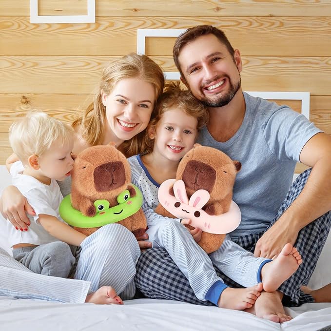 - 【Cute Capybara Stuffed Animals Design】This is a great design. A cute capybara wears a frog swimming cicle. Our plush doll are made by imitating real animals. You can put it anywhere you like. This is a perfect decoration and companion. We believe that if you bring these capybara gifts home, it will catch the attention of all your family or friends.