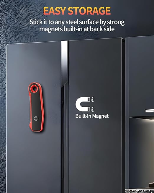 - 180° LARGE LED ROTATING DISPLAY: The cooking thermometer features a large 2-inch backlit display with large illuminated digits that you can see clearly at any time of the day or night, even when cooking outdoors; the 180° automatic rotation function makes it easy to read the values, even for those who are at a poor angle or are accustomed to using their left hand