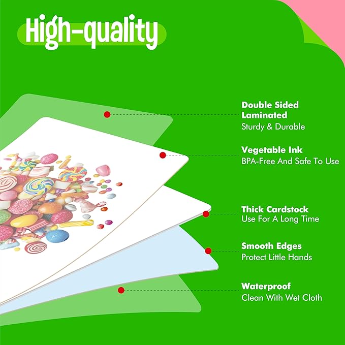 - Thick Cardstock: The cards are printed on durable, high-quality cardstock, sturdy enough for repeated handling. Their smooth, tear-resistant surface and rounded corners make them safe and easy to use for young learners or individuals with fine motor challenges.