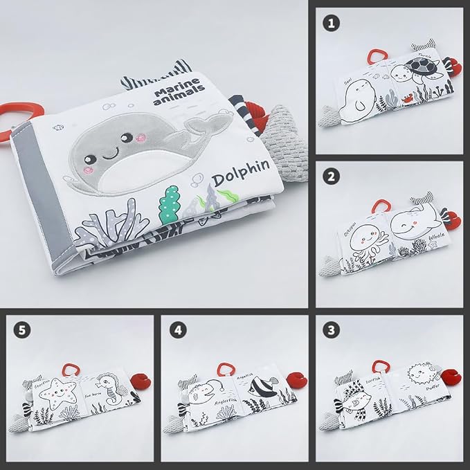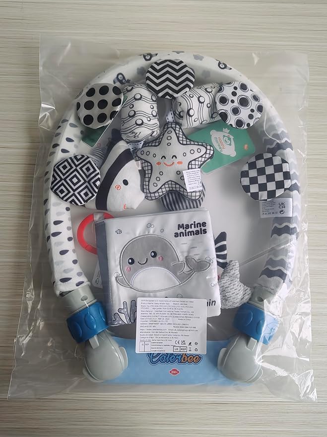 - Interactive Hanging Toys – Includes a fish and ocean star plush toy with built-in press-to-sound features, a soothing wind chime that jingles when shaken, and an innovative detachable toy book with 10 different patterns for added fun.