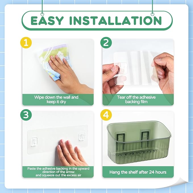 - Nail Free Installation: This bath tub toy storage is easy to install, using nail free and drill free methods. It is equipped with nail free hooks that are firmly attached and will not easily fall off. It does not damage the wall and is easy to disassemble