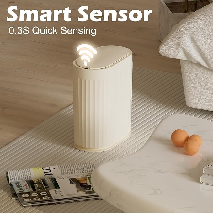 - Motion Sensor Design - The lid opens instantly (0.3 seconds) as your hand approaches, enabling Convenient disposal. Automatically closes after 5 seconds of inactivity, balancing convenience and energy efficiency.
