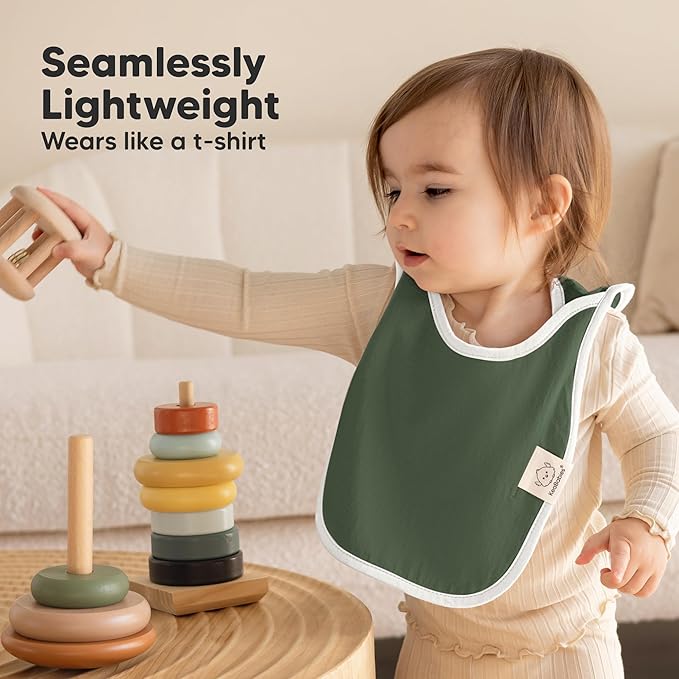 - For Active Infants, Toddlers - The Hallo Baby Teething Bib features a pullover lap shoulder design—no snaps, easy to put on. Just slip it over the baby's head like a t-shirt, and you’re all set. It stays on all day, even for the most active toddler.