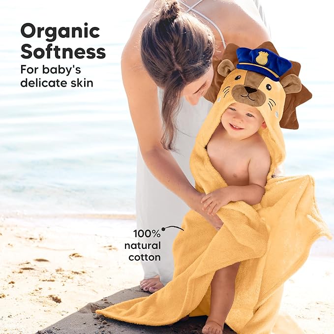 KeaBabies Organic Baby Towel with Hood for Girls, Boys - Soft, Absorbent, 100% Cotton Hooded Baby Towels for Newborns, Infants, Large Hooded Bath Towels for Babies, Kids, Toddler 1-3 (Leo)