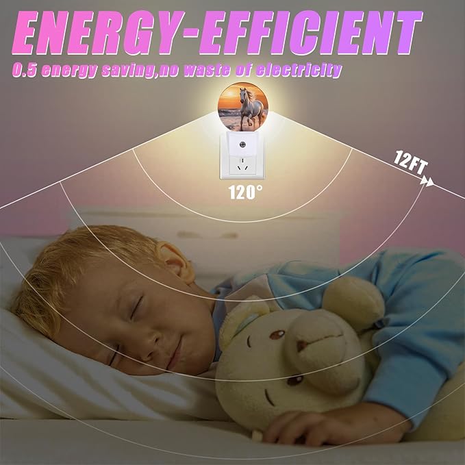 Running Horse Night Light Sunset Night Lights LED Lamp Round Plug into Wall Nightlight with Dusk to Dawn Sensor Home Hallway Stairway Kitchen Decor