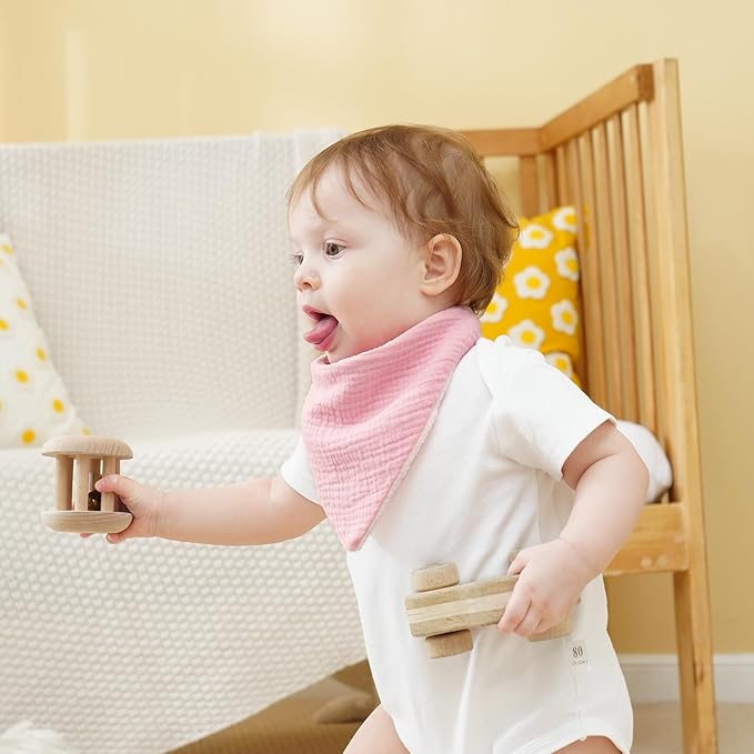 • Wide Applications: These soft muslin baby drool bandana bibs can be used as teething bibs, burp cloths, washcloths, wipe cloths, and even a stylish handkerchief on journey.