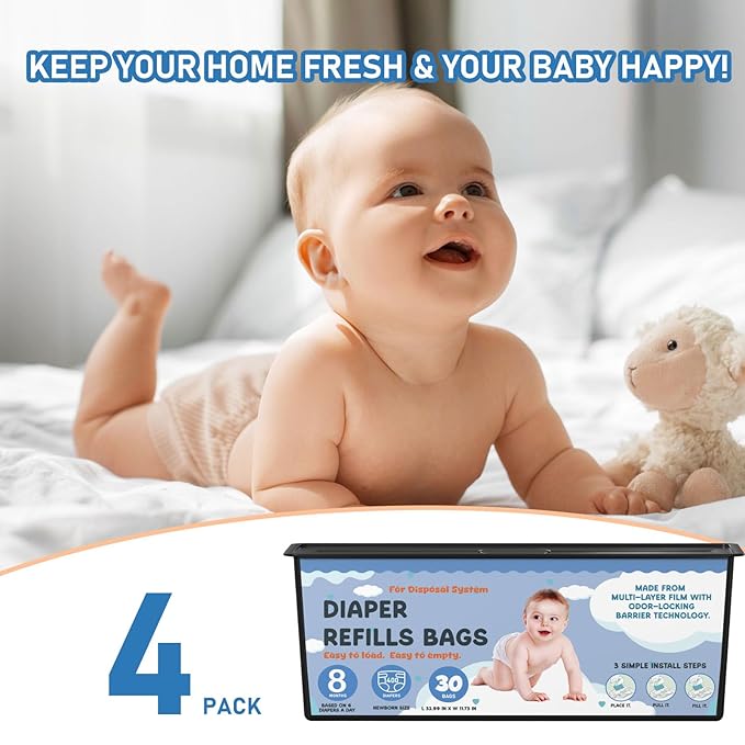 - Easy to Use: Each diaper pail refill cartridge contains 30-count bags. Simplify your diaper changing routine with these convenient refill bags, offering an easy and hygienic solution for disposing of diapers, perfect for busy parents and caregivers.