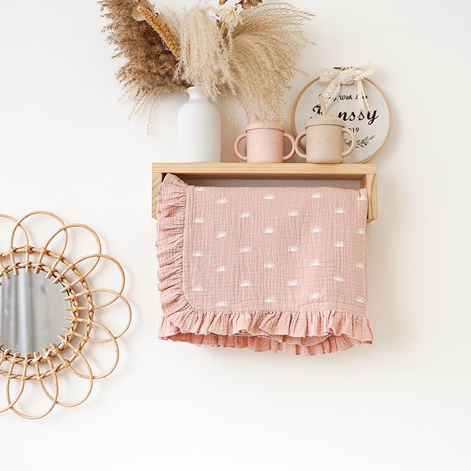 Konssy Flounce Muslin Baby Blankets, Cotton Crib Blanket for Baby Infant Toddler, Super Soft and Lightweight Nursery Blankets 40"x36" (Sun)