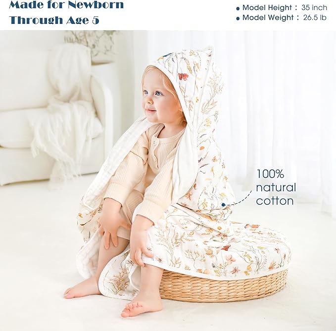 - Soft and Absorbent Fast: GRSSDER hooded toddler towel is made of super soft, 6 layers cotton muslin which is three times more absorbent than a single material. Quickly absorb the moisture from baby's skin, ensuring your baby stays warm and dry after each bath.