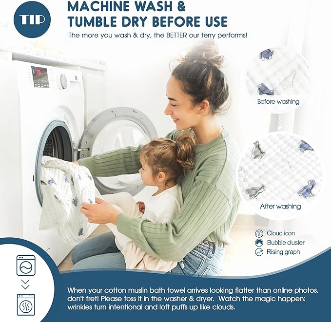 - The Perfect Baby Gift: Baby towel wrap is must have item for newborn, infant and toddler. GRSSDER infant hooded towels are machine washable and dryer-friendly, perfect for baby showers, birthdays, or as a thoughtful baby gift for new parents, our sets cater to every baby's needs, from newborns to toddlers, ensuring they are dry, warm, and comfortable.