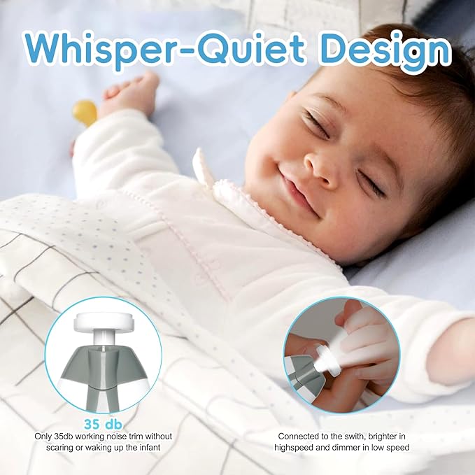 - Noiseless – Equipped with a whisper-quiet design, you can file nails even as the baby sleeps, without causing any disturbance.