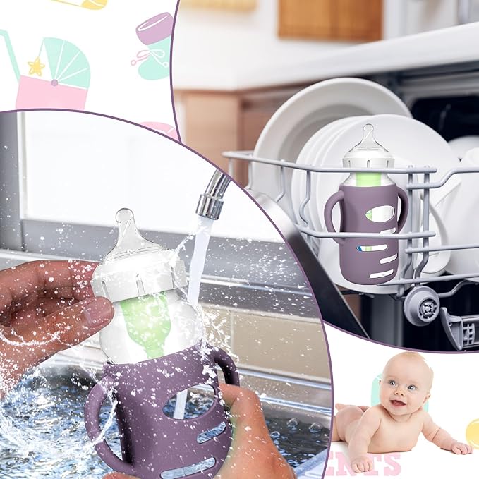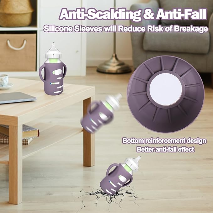 - Unique Designed for Baby Bottles - The silicone sleeves for Dr. Brown's Baby Bottles can against drop down,bumps and scratches. These are a must essential product for using glass baby bottles. They provide a more sturdy protection for glass baby bottle from breaking if dropped, which also unique handle design shape make it easier to grip and hold