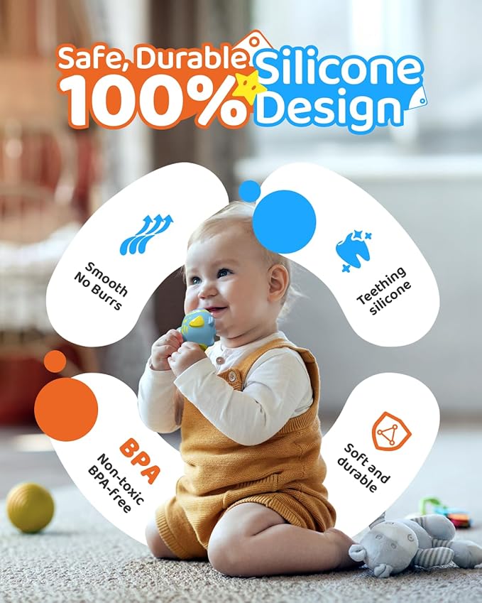 • 【Safe for Little Explorers】Built with ultra-soft silicone, the toy has no sharp edges, seams, or small parts—ensuring it’s gentle on toddlers’ skin and safe for teething.