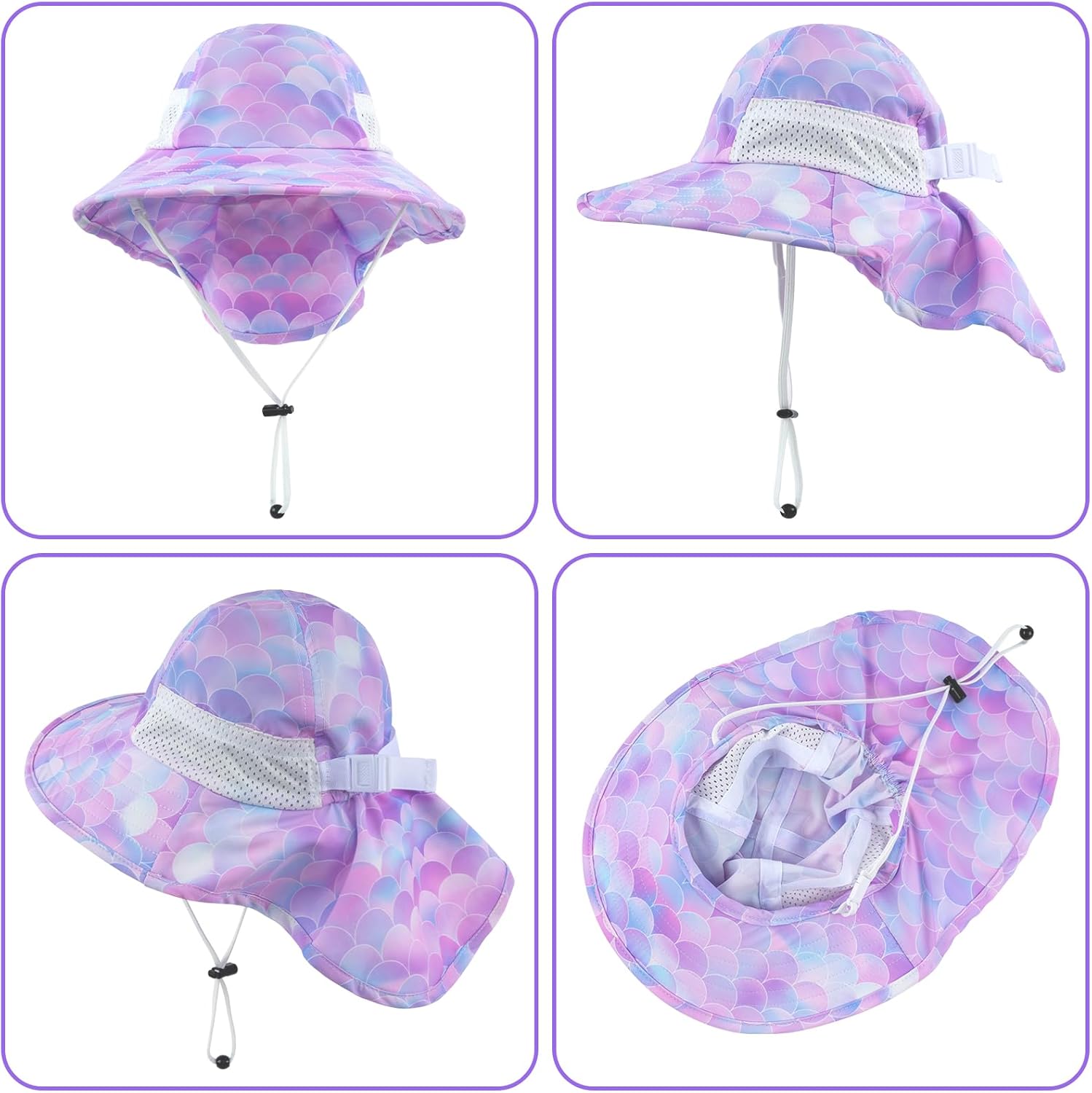 - GREAT SUN PROTECTION: The kids sun hat features highest rated UPF 50+ sun protection, which blocks up to 98% of UVA and UVB Rays! Its 3" wide brim and 5.4"long neck flap help to cover kid's face, ears, back and neck, thus protecting the delicate skin from sun burn better