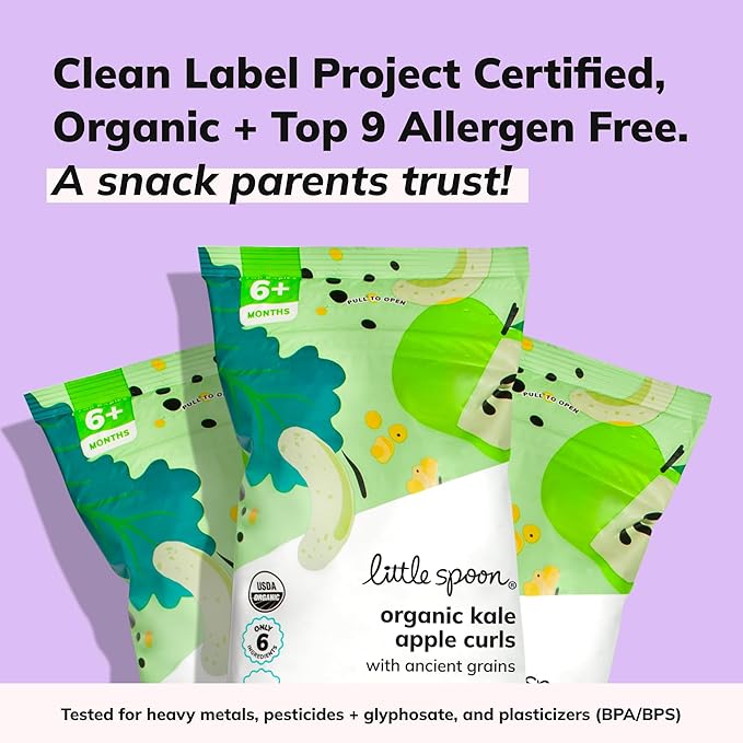 Little Spoon Kale Apple Meltable Baby Puffs, Organic Corn Quinoa Sorghum, No Rice, No Added Sugar Snacks, Encourages Self-Feeding, 1 Oz Bag, 4 Pack