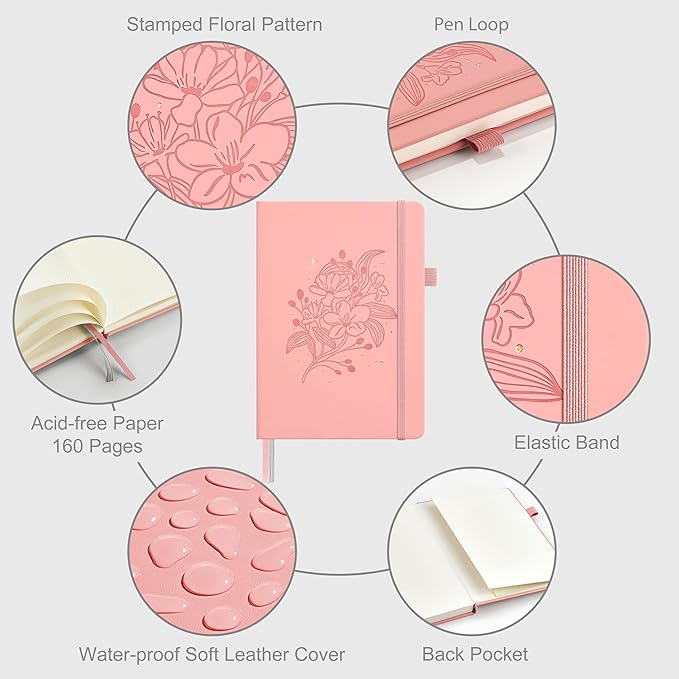 - DURABLE HARDCOVER NOTEBOOK: Durable PU leather hardcover, protects ruled notebook from wear and tear, provides a comfortable writing surface. Expandable back pocket includes free stickers can holds notes, business cards, small gadgets