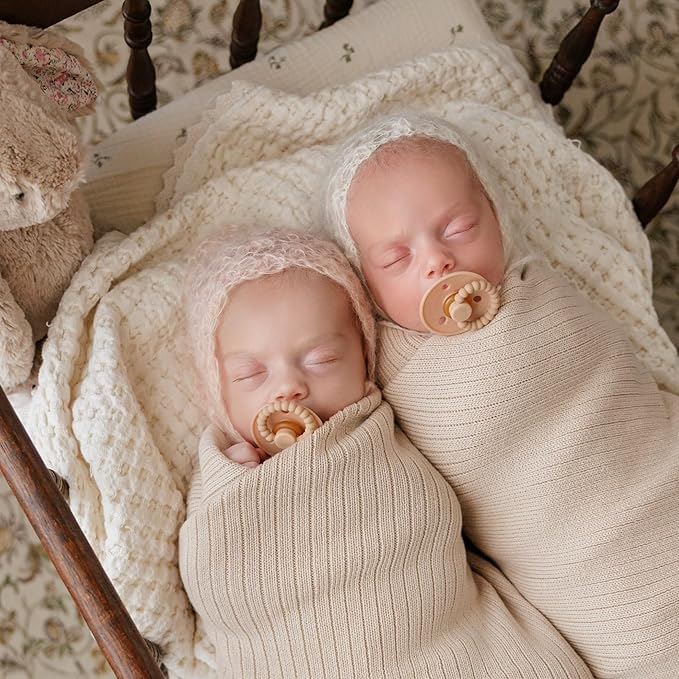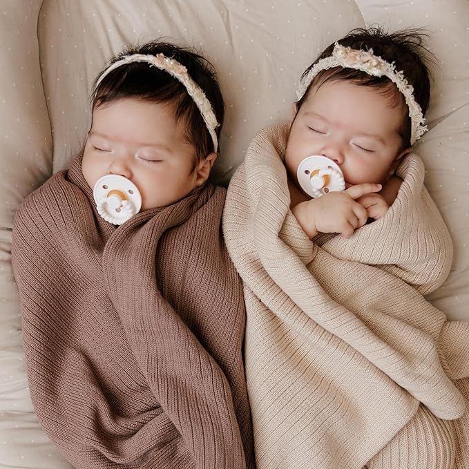 Luladream Pacifier and Clip Set - Natural Rubber Nipple - Soft Teething Handle - for Infants Baby's and Toddlers, 0-18 Months (Camel + Cream + Clips)
