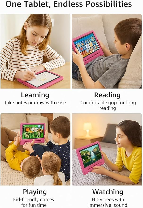 - 【Durable Multi-Angle Stand Case for Kids Tablets】 This child-safe silicone sleeve offers 360° protection from drops, spills, and daily wear. The flexible yet shock-absorbent design weighs less than 6oz, keeping tablets portable for little hands. Its convertible kickstand props screens at 3 angles for hands-free learning, movie time, or art sessions. Non-toxic, wipe-clean materials resist crumbs and crayon marks – perfect for ages 3-12