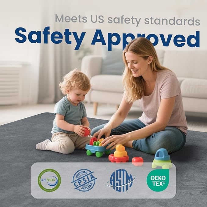- Certified Safe & Non-Toxic: Rigorously tested for safety, this nursery rug meets OEKO-TEX(on shell), ASTM, and CPSIA standards, ensuring a safe, chemical-free surface for your baby to crawl, play, and explore.