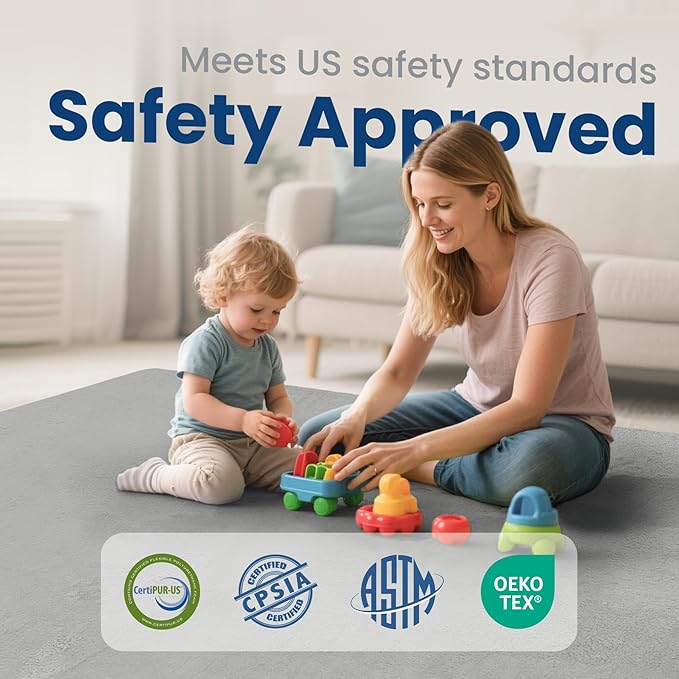 - Certified Safe & Non-Toxic: Rigorously tested for safety, this nursery rug meets OEKO-TEX(on shell), ASTM, and CPSIA standards, ensuring a safe, chemical-free surface for your baby to crawl, play, and explore.