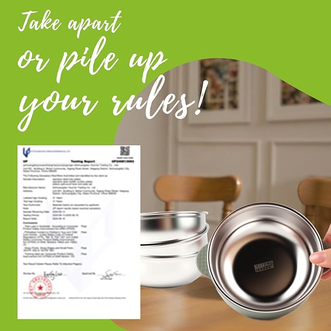 - 【Easy to clean & easy to store】Stainless steel toddler bowls, support boiling water disinfection/steam disinfection/dishwasher cleaning. (All parts are dishwasher safe) Stackable storage design,Make reasonable use of kitchen space.