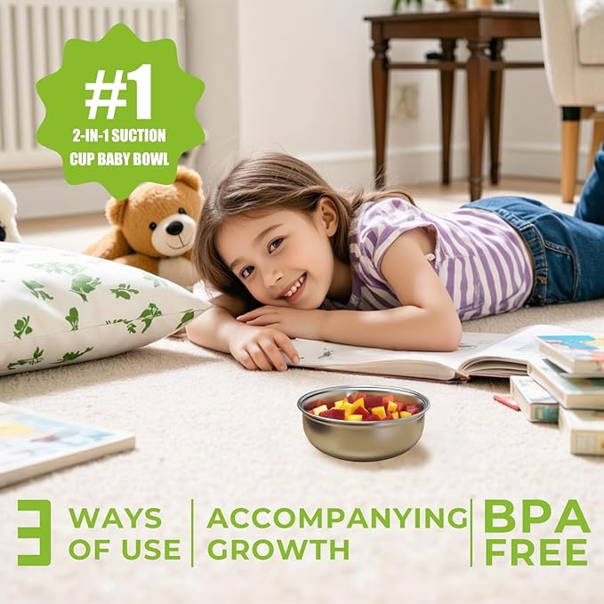 - 【Removable & Versatile】Silicone shell removes easily for separate use - stainless steel bowl for cold foods, silicone shell for hot meals, Perfect for transitioning from purees to solids.