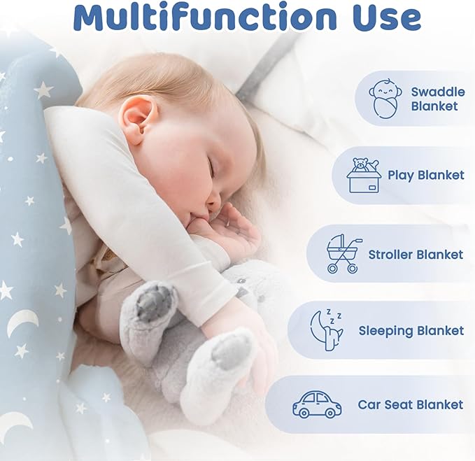 - Comfortable material: the baby blanket is light and breatable, ensuring your little one stay comfortable all year round; one side features a smooth surface while the other is 3D dotted