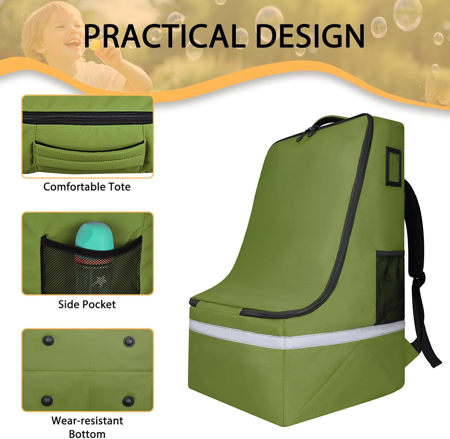 Car Seat Travel Bag for Airplane,Infant Seat Travel Bag with Shoulder Strap,Padded Car Seats Backpack with Reflective Stripes,Large Carseat Carrier Bag Travel Car Seat Cover,Green