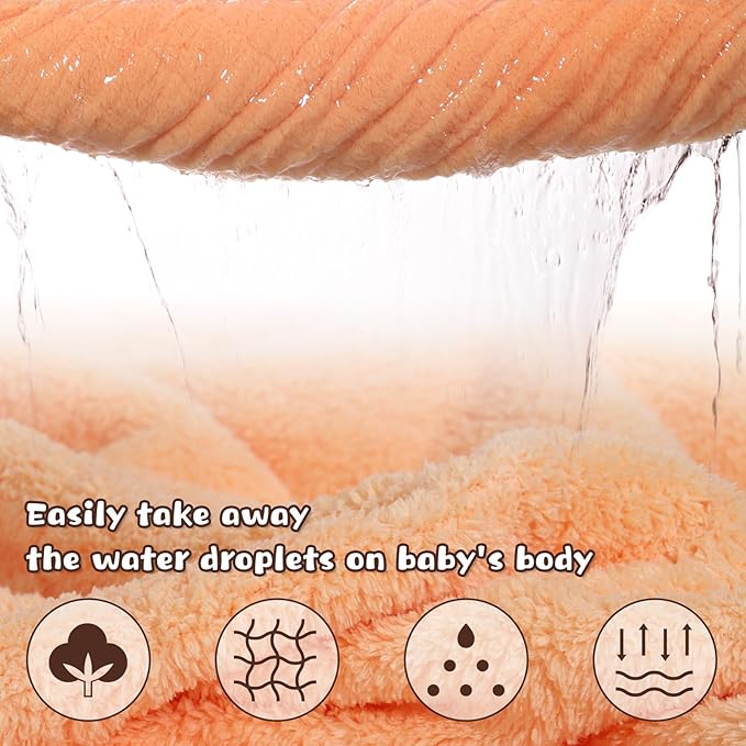 - Soft Hooded Baby Bath Towels:The baby bath & hooded towels are made of premium microfiber, which is soft, absorbent and comfortable. Very gentle and safe for baby's sensitive skin, keeps baby dry and warm quickly after baths.