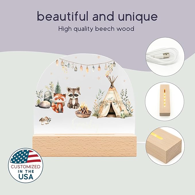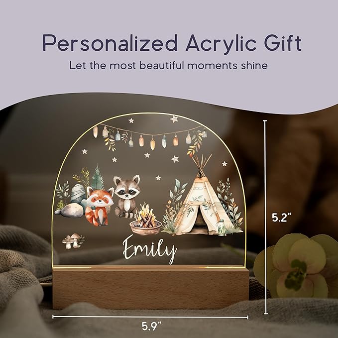 - Custom Design & Quality Materials: Crafted from crystal-clear acrylic and a sturdy wooden base, this personalized night light offers a charming design with safe, non-toxic baby paint, perfect for any nursery or child's room.