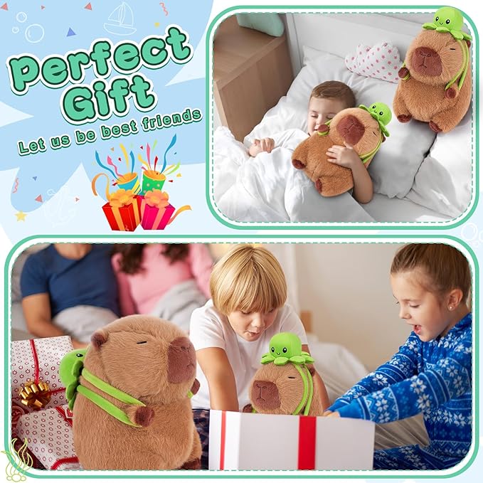 - 【Cute Capybara Stuffed Animals Design】This is a great design. A cute capybara carrying a octopus backpack that can be easily removed. Our plush doll are made by imitating real animals. You can put it anywhere you like. This is a perfect decoration and companion. We believe that if you bring these capybara gifts home, it will catch the attention of all your family or friends.