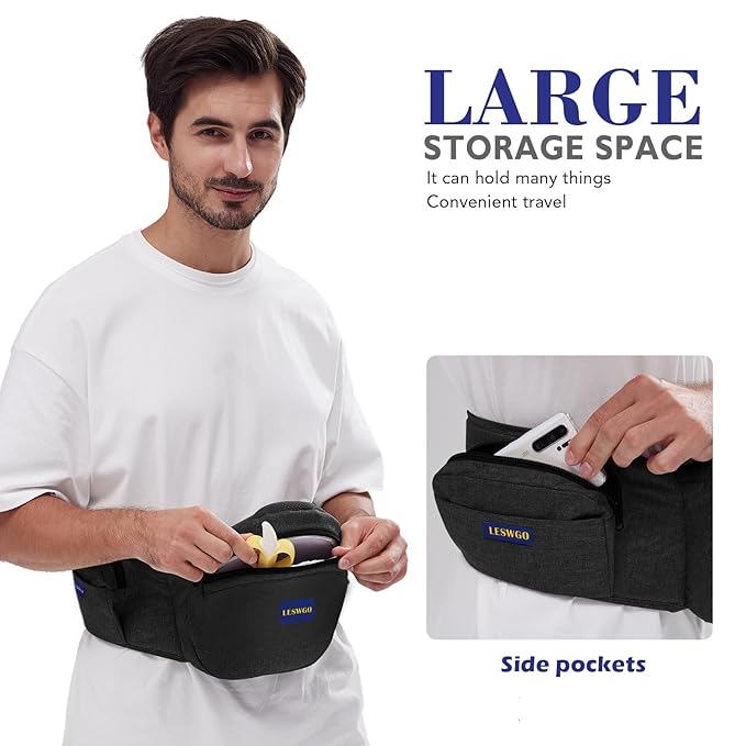 - 【Convenient Feature Baby Holder Carrier】: Baby hip seat has enough storage, includes two zippered storage pocket and a bottle pocket, perfect for carrying essentials like diapers, wipes, wallet, keys,or your phone.