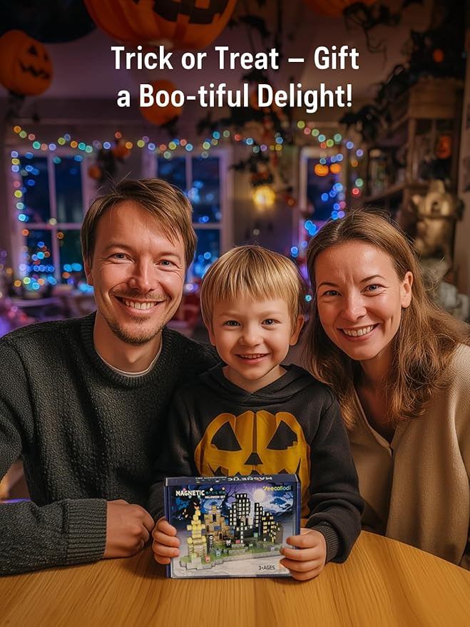 - Building Light Blocks Set – Endless Halloween Adventures for All Ages The set offers stage-specific building experiences to blend creativity with skill development: Ages 3–5: Spark imagination with colorful blocks/terrain tiles to build pumpkin patches, fostering sorting skills and fine motor control. Ages 6–8: Dive into spooky STEM play! Assemble coffins and skeletons to explore magnetic principles in haunted scenes. Ages 8–12: Construct epic masterpieces! Use glow-in-the-dark LEDs to design multi-story ghost mansions with eerie ambiance.