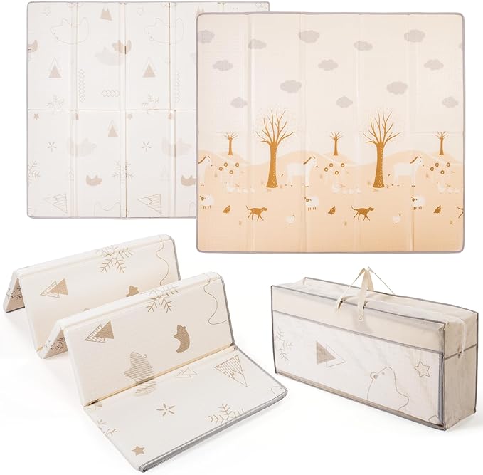 - 【Foldable & Portable】Our foldable baby play mat easily folds in seconds and comes with a portable carry bag for easy storage or travel