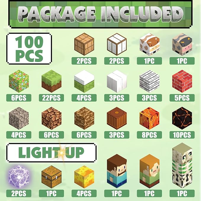 - 2PC with Light : Flip the switch, and the 2 glowing blocks light up, filling playtime with mystery. They're great for sprucing up courtyard garden or any scene kids build