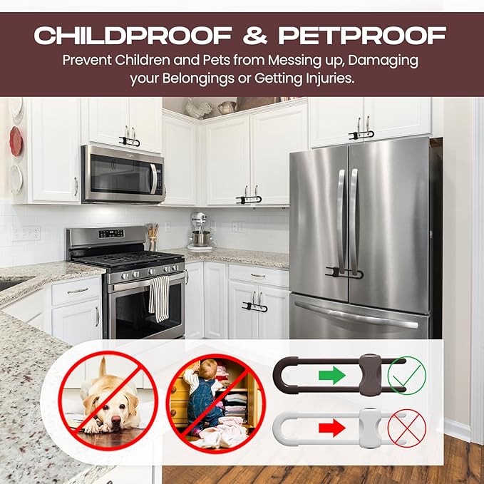 - Wide applications: these cabinet locks can help to prevent your little ones from reaching to kitchen cabinets, side by side refrigerator, cupboards, storage doors and make them stay out of trouble, can be applied in kitchen, bathroom, pantry room, bedroom etc.; And these sliding cabinet locks, reusable and convenient, are suitable for all kinds of mushroom shaped round knobs and D-shaped or annular handles, safely keeping curious babies and active pets away from cabinets
