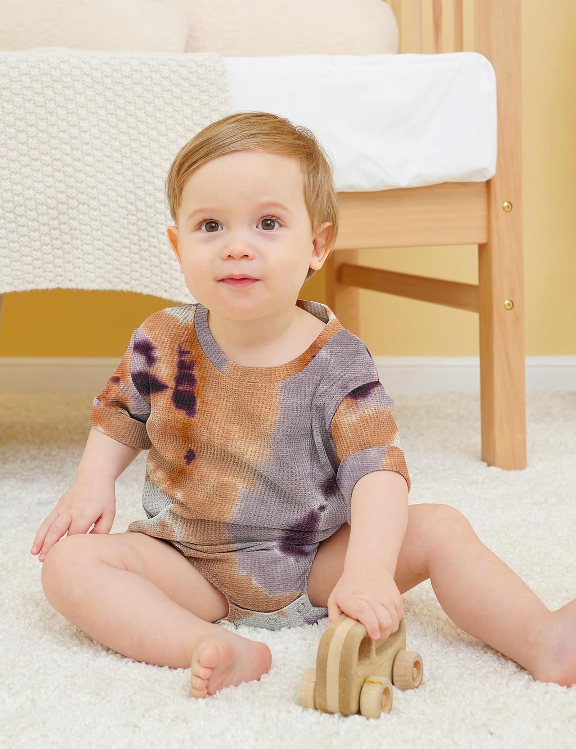 • One-of-a-Kind Pattern: Each piece is using tie dyeing process, creating unique marbled patterns that make your baby the star of every playdate. Unlike mass-produced prints, our tie-dye magic ensures no two outfits are exactly alike!