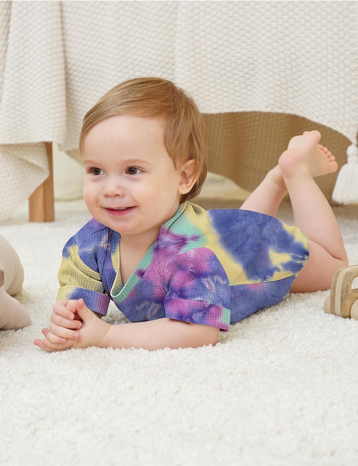- One-of-a-Kind Pattern: Each piece is using tie dyeing process, creating unique marbled patterns that make your baby the star of every playdate. Unlike mass-produced prints, our tie-dye magic ensures no two outfits are exactly alike!