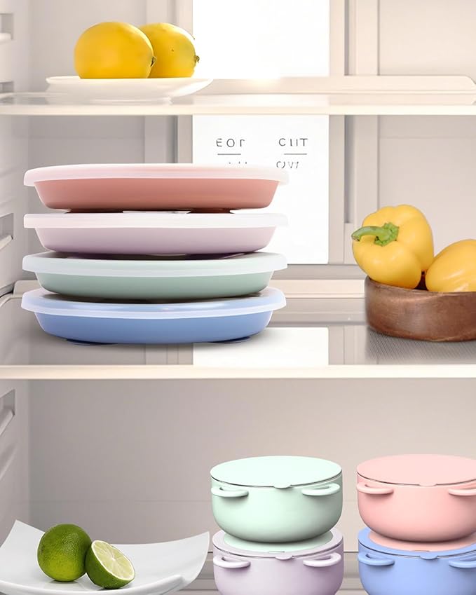 - Mess-Free Storage for Busy Parents: The soft silicone lid keeps food covered for travel or fridge storage. It's not leakproof, but it keeps smells contained and lets you stack meals easily—great for families with more than one hungry kid. Optimized wall height guides utensils to mouths successfully, boosting independent eating confidence with our stainless steel plates
