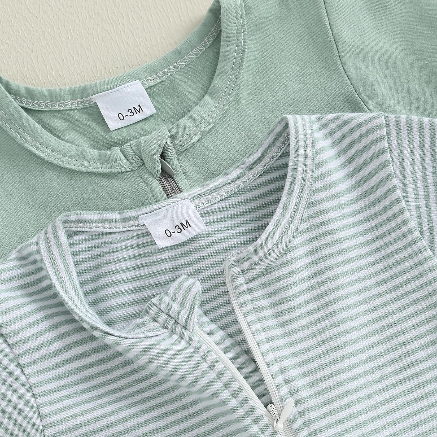 Merqwadd Baby Boy Girl 2 Pack Romper Short Sleeve Zipper Jumpsuit Plain Summer Clothes